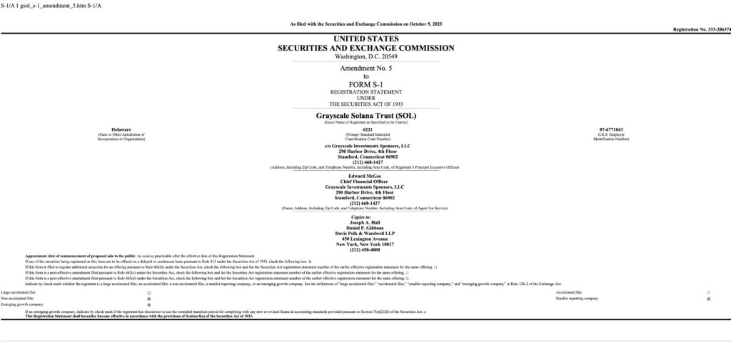 Grayscale Solana ETF (GSOL) Launches with 0.35% Trading Fee