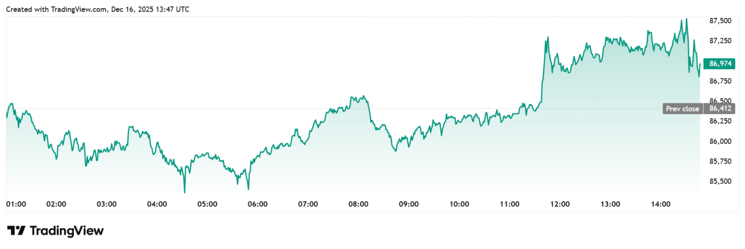 The job growth reported for November is critical, especially following a loss of 105,000 jobs in October, which was itself a drop from the 119,000 jobs added in September. While a higher-than-expected addition of jobs can be viewed positively, it often signifies an increased likelihood of monetary tightening, which is generally a bearish signal for Bitcoin and the broader cryptocurrency marketplace. As traders eagerly assess these statistics, Bitcoin initially rose above $87,000, only to retreat to approximately $86,800 shortly afterward.