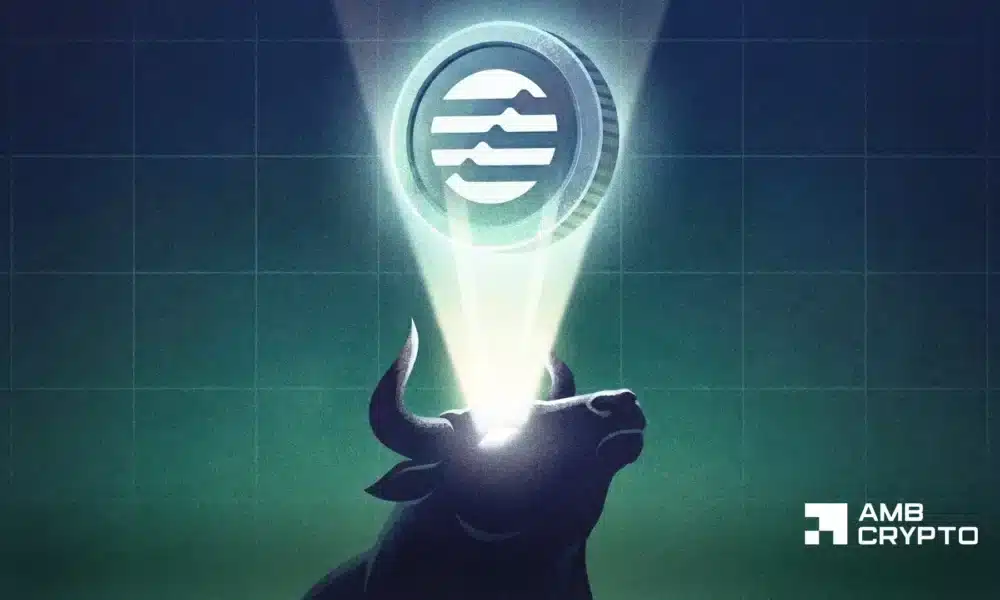 On the 4-hour chart, a rising triangle pattern has developed just under the $1 resistance. Both the A/D and MFI indicators are slightly bullish in this timeframe, but the most compelling aspect is the emerging triangle pattern. As buyers challenge the $1 level, the formation of higher lows underscores an underlying conviction in a potential bullish breakout. This continued contestation of the psychological barrier reveals an increasing bullish strength in the market.