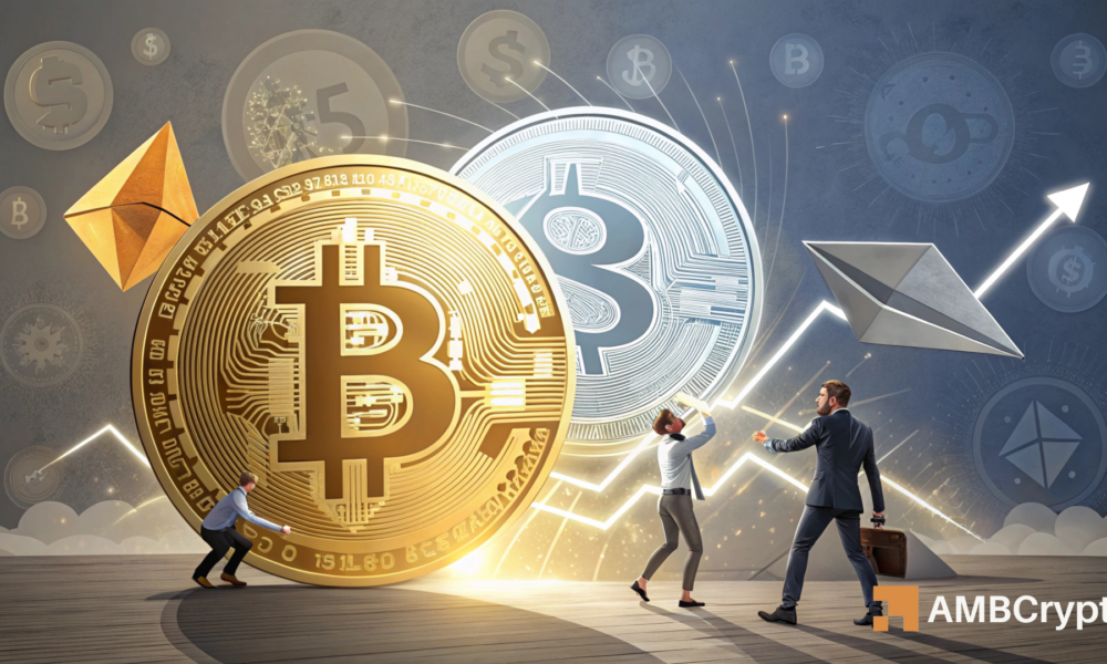 A comparison between the Open Interest ratios for Bitcoin and Ethereum reveals important insights into the market’s behavior. Bitcoin’s OI ratio sits at 58.14%, while Ethereum’s is considerably lower at 21.19%. A high OI ratio, such as BTC’s, suggests potential price volatility, indicating that shifts in trading positions could result in rapid price adjustments. In contrast, ETH’s lower OI ratio implies a reduced hedging effect, meaning market participants may be less responsive to price swings.